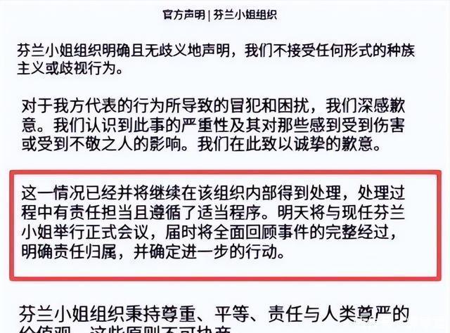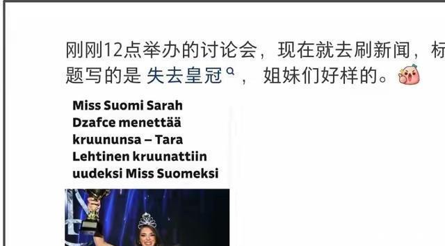 而压垮骆驼的最后一根稻草,来自芬兰小姐主办方。起初,主办方还想护着莎拉,发表声明替她辩解,试图平息舆论。