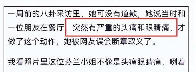 面对铺天盖地的指责,她的第一反应不是道歉,而是嘴硬狡辩。她声称自己是“头疼眼疼”,拉扯眼角只是下意识的生理反应,还倒打一耙,指责网友“过度解读”“小题大做”。